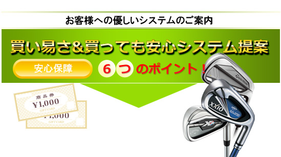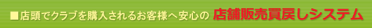 ※購入時よりクラブの状態が著しく低下している場合は、買戻しシステムが適用できかねますので、予めご了承下さい。 商品の消費税を除いた金額からの買戻しとなります。 カード手数料+消費税を除いた金額からの買戻しとなります。 その他、ご不明な点がございましたらお買上げの店舗までお気軽にお問い合わせ下さい。